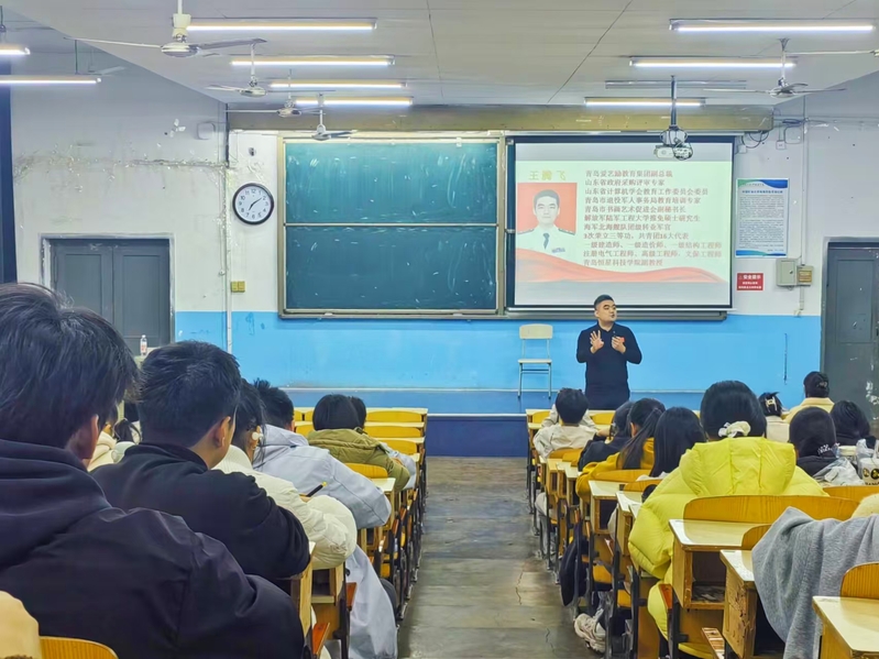 活动现场,王腾飞以自身生涯经历为切入点,分享了大学、研究生及工作阶段的心态转变与目标追求,结合实操经验展开干货分享。互动环节中,他以幽默风趣的语言与学生实时问答,并深入剖析当前就业形势,结合生活实例提供针对性职业规划指导。随后,他从职业性质、岗位分类、报考流程及报考条件等核心维度,系统解读军队文职相关政策,并对青年学子的未来发展寄予殷切期望。